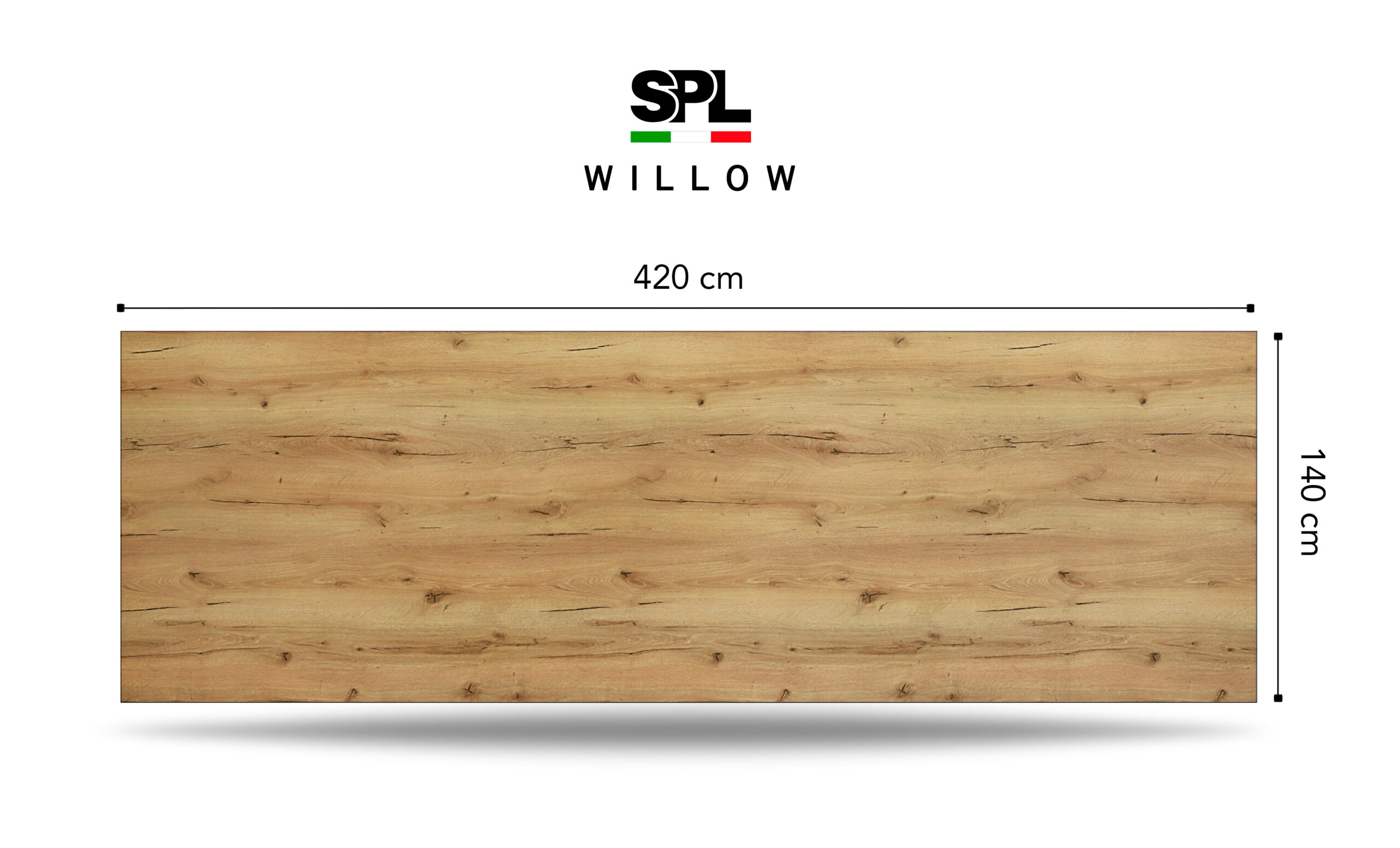 ابعاد ورق های متریال SPL = 4200 میلیمتر طول در 1400 میلیمتر عرض و به ضخامت 12 میلیمتر